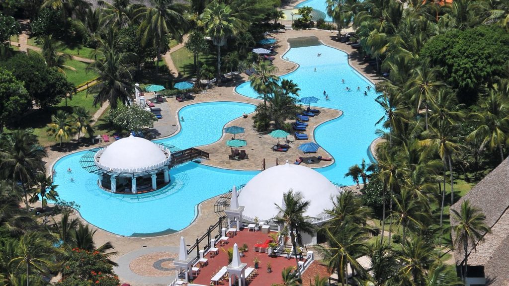 Southern Palms Beach Resort, located on the dazzling white sands of Diani Beach, offers a luxurious escape blending African warmth with modern amenities. This expansive resort is set within beautifully landscaped gardens, creating a tranquil environment for guests seeking both relaxation and adventure. The resort’s Swahili-inspired architecture, combined with its proximity to the Indian Ocean, makes it a perfect getaway for couples, families, and groups. Whether lounging by the pool or exploring marine life, Southern Palms promises an unforgettable coastal experience.