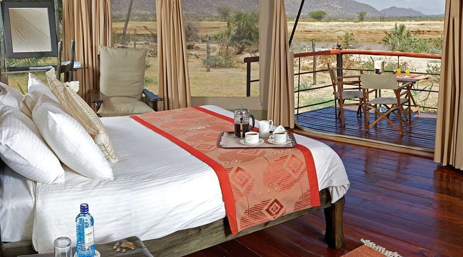 Ashnil Samburu Camp is a luxury tented set in the spectacular backdrop of the Mighty Ol Olokwe mountain fronting Ewaso Nyiro River.